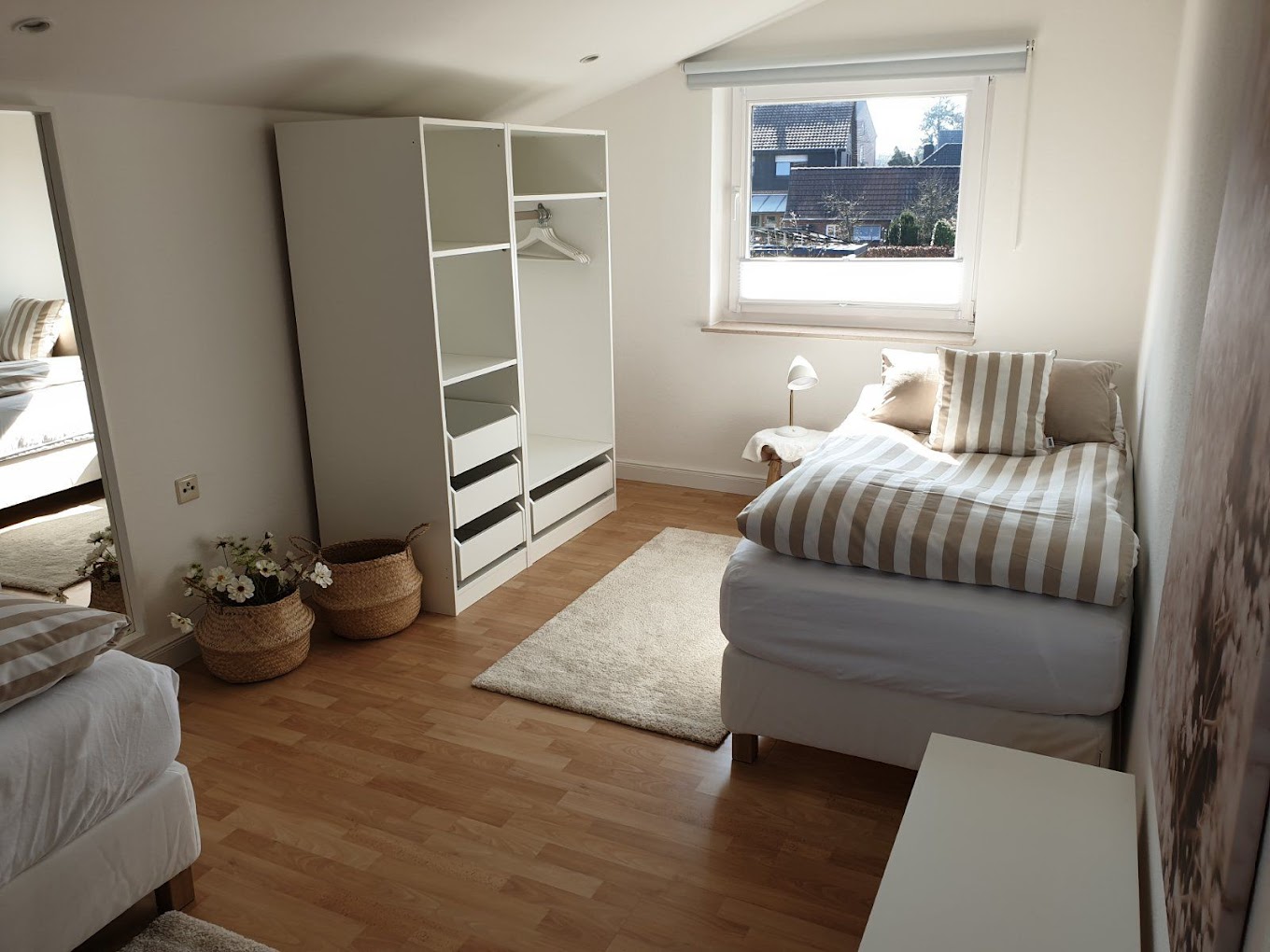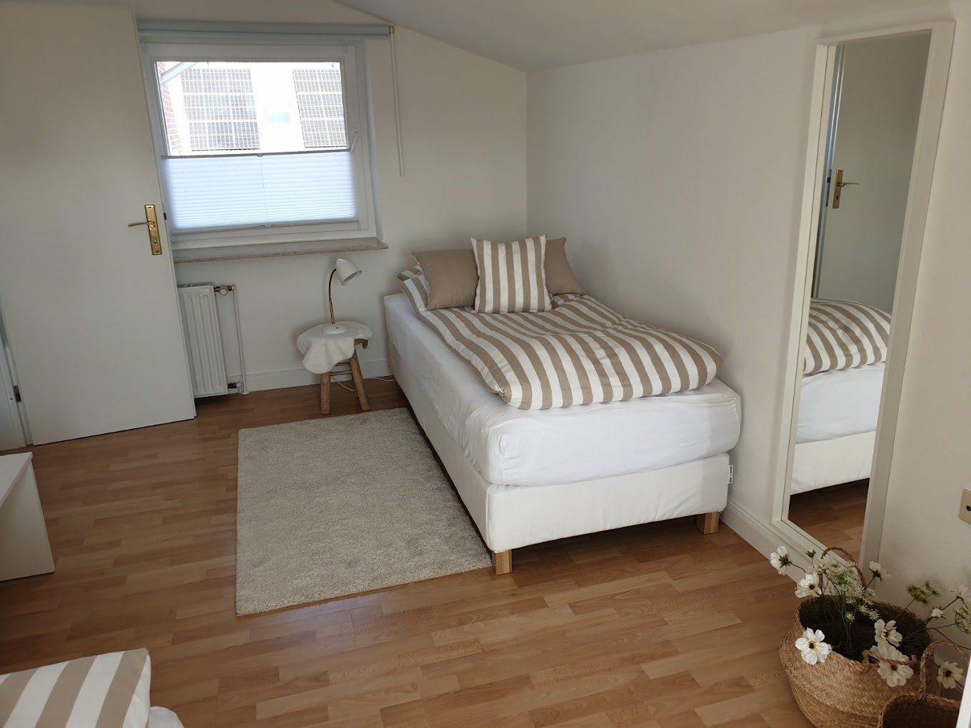 Ebenfalls im Erdgeschoss befindet sich eine separate Toilette. Im Obergeschoss stehen Ihnen drei Doppelzimmer zur Verfügung, die auch als Einzelzimmer buchbar sind, sowie ein Bad mit begehbarer Dusche. Parkplätze finden Sie direkt vor unserem Haus. Auf Anfrage bieten wir gegen Gebühr auch einen Stellplatz für ein Wohnmobil an. Für Fahrräder und Motorräder gibt es abschließbare Unterstellmöglichkeiten, und E-Bikes können bei uns aufgeladen werden.
